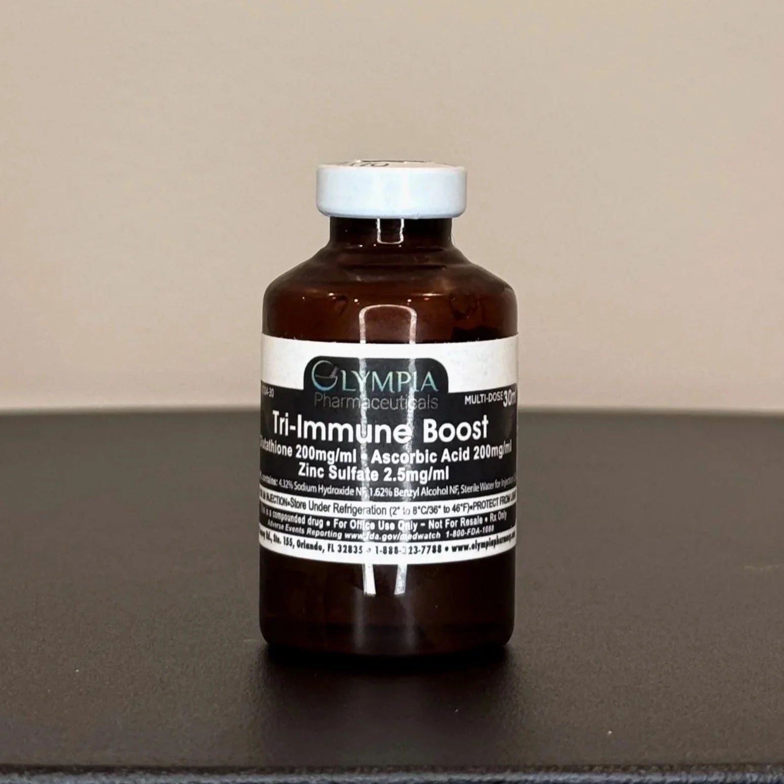 For those looking to strengthen immune defenses and support overall vitality. Tri Immune Injections combine ascorbic acid (Vitamin C), zinc sulfate, and glutathione to support cellular health, enhance immune response, and help protect immune cells from oxidative stress.